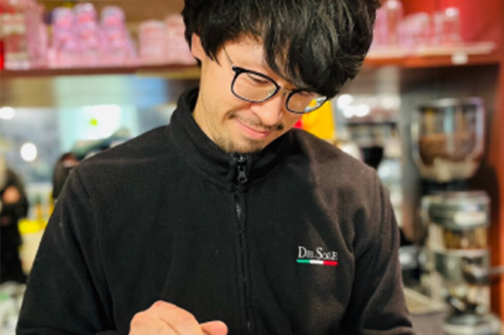 『デルソーレ』の看板商品といえばエスプレッソです。当然美味しいエスプレッソを作るためには、高品質なコーヒー豆やマシンだけではなく、高度な技術や知識、経験を持ったバリスタが必要です。私たちの会社には、バリスタ横山をはじめ、現場経験豊富なバリスタが多数在籍しており、各種バリスタ大会(JBA/IIAC/SCAJ主催の大会など)での優勝経験を持つバリスタも多数在籍しています。また、JBA(日本バリスタ協会)、IIAC(国際カフェテイスティング協会)、SCAJ(日本スペシャルティコーヒー協会)の3協会については、それぞれの協会の設立当初から協会運営に携わり、JBAとIIACについては、協会認定校としての活動にも力を入れており、業界振興と日本のバリスタ育成に貢献するべく日々活動をしています。社内にはバリスタ育成プログラムや接客サービス講習もあるので、現場実習と合わせて、バリスタやエスプレッソのことから接客サービスまで深く経験して学べる環境があります。