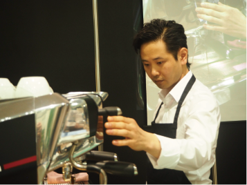 「現場では、マネージャー業務だけではなく、バリスタや調理などの業務も行っています。また、社内バリスタトレーナーとして、バリスタの指導にもあたっています。バリスタトレーナーとしては、自分の今までの経験を生かして、個々のバリスタの個性を大切にしながら、個々の成長スピードにあわせた指導を心がけています。