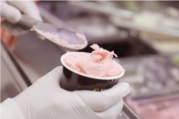 『デルソーレ』のもう一つの看板商品にジェラートがあります。ジェラートもエスプレッソ同様、製造する職人(ジェラティエーレ)の技術や知識、経験がものを言う世界です。『デルソーレ』のジェラートの原点も実はバリスタの横山にありました。横山は前職で、ジェラティエーレとして、ジェラートの技術や知識を学ぶためにイタリアに修業に行き、イタリアジェラート界の重鎮ガブリ・エッツェル氏からイタリアジェラートの伝統製法を学び修得しました。その後、日本でオープンしたジェラート店の商品開発に携わり、その店として挑戦したジェラートの世界大会で3年連続で金賞を受賞しました。『デルソーレ』のジェラートは、この時に横山がイタリアで学んだイタリア伝統製法をベースにしながら、常に日本の市場にマッチするように進化し続けています。『デルソーレ』のドルチェについても考え方は同様で、イタリアの伝統を大切にしながら、日本の市場に合うように進化させています。イタリアの伝統に基づいたジェラートやドルチェの技術を学べます。